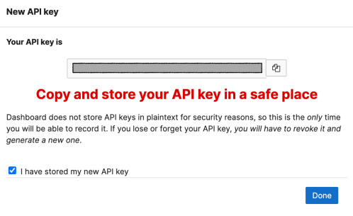 Meraki does not store API keys in plaintext. This is the only time you will be able to view them. If the key is lost or forgotten, you must revoke it and generate a new one.